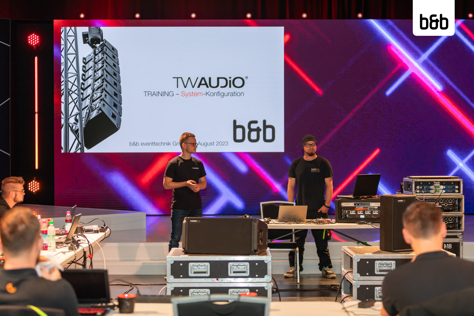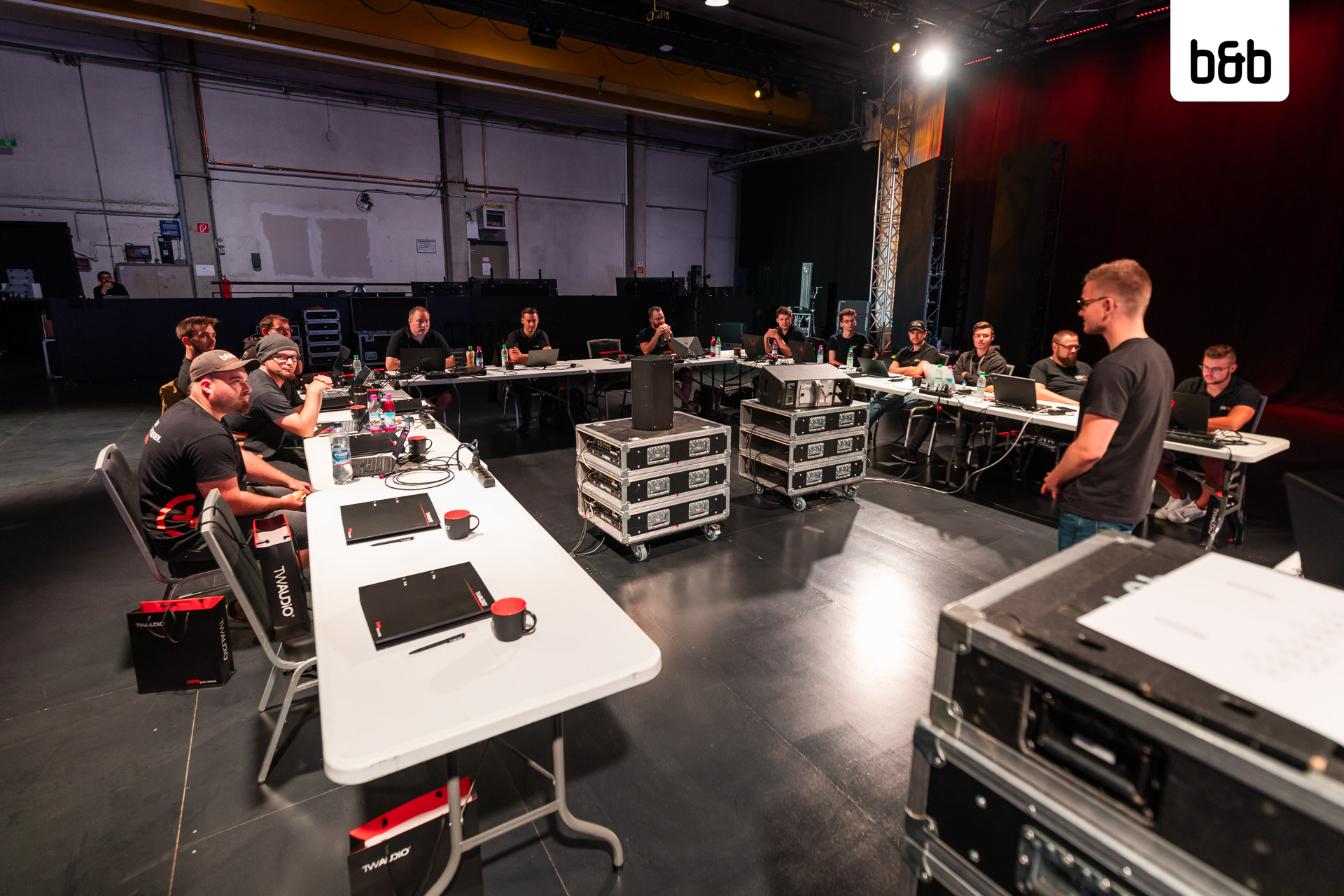 Um sicherzustellen, dass unsere Mitarbeiter immer die bestmögliche und professionellste Performance liefern können, haben wir mit TW AUDiO eine Schulung initialisiert. Bei der internen Fortbildung haben wir uns hierzu neulich im GATE22 getroffen. In einem theoretischen und dann praktischen Teil wurden die Software ArmoniaPlus mit den Powersoft Amps im Detail unter die Lupe genommen. Es nahmen externe Partner sowie b&b Mitarbeiter vom zweiten Lehrjahr bis zum Senior Techniker teil.