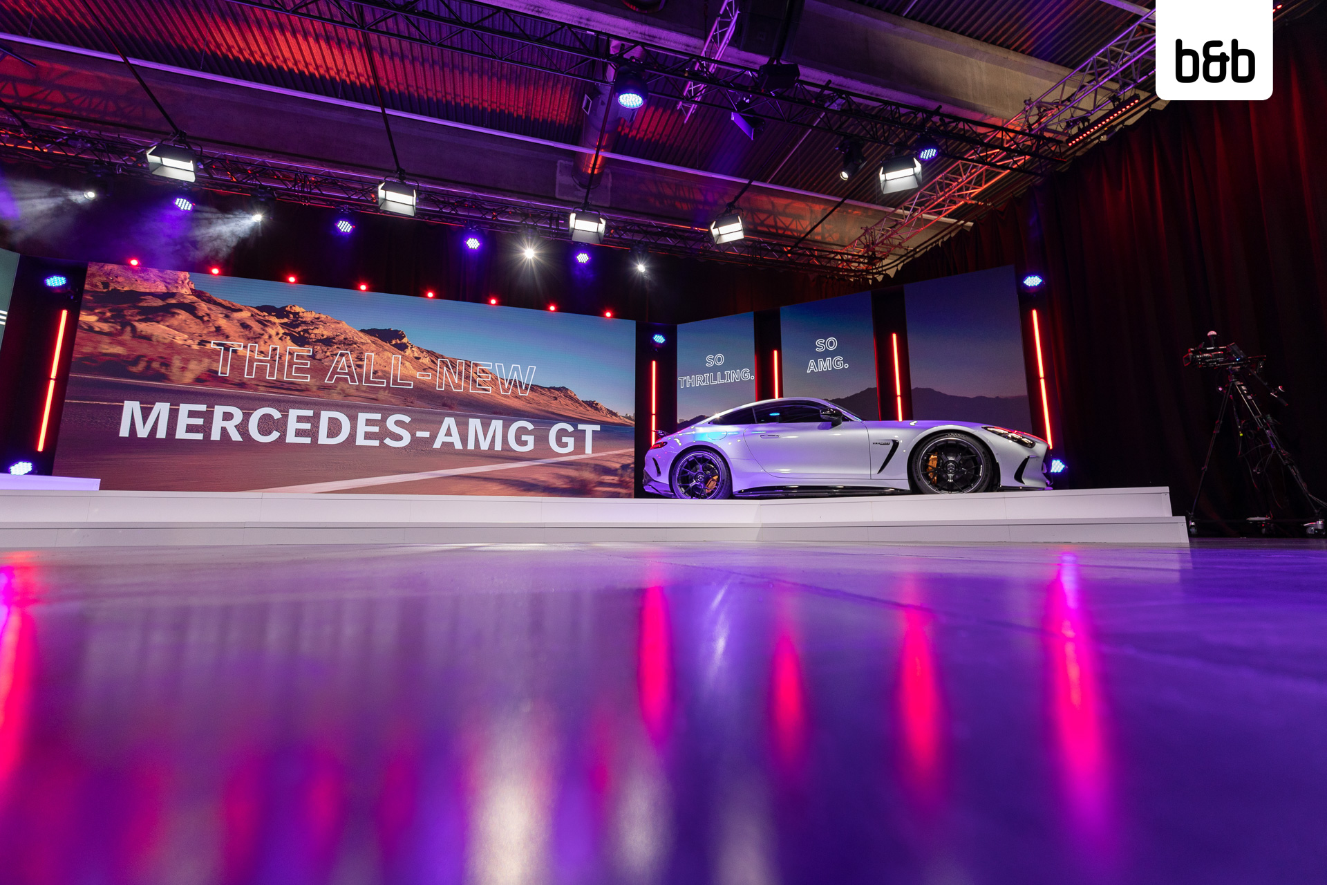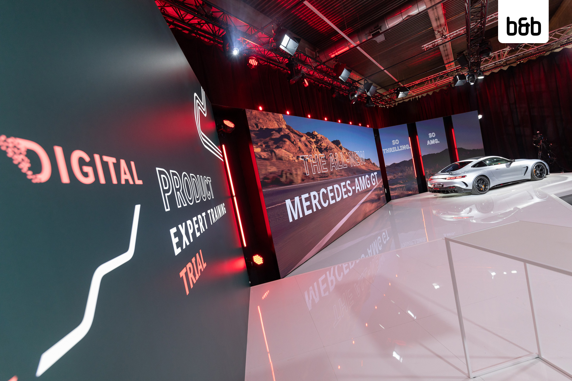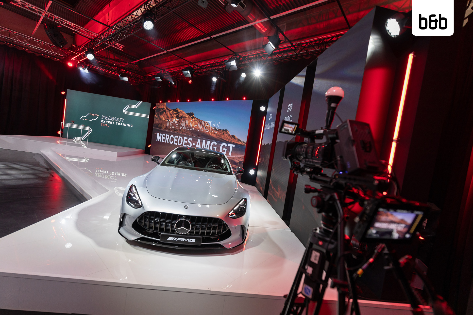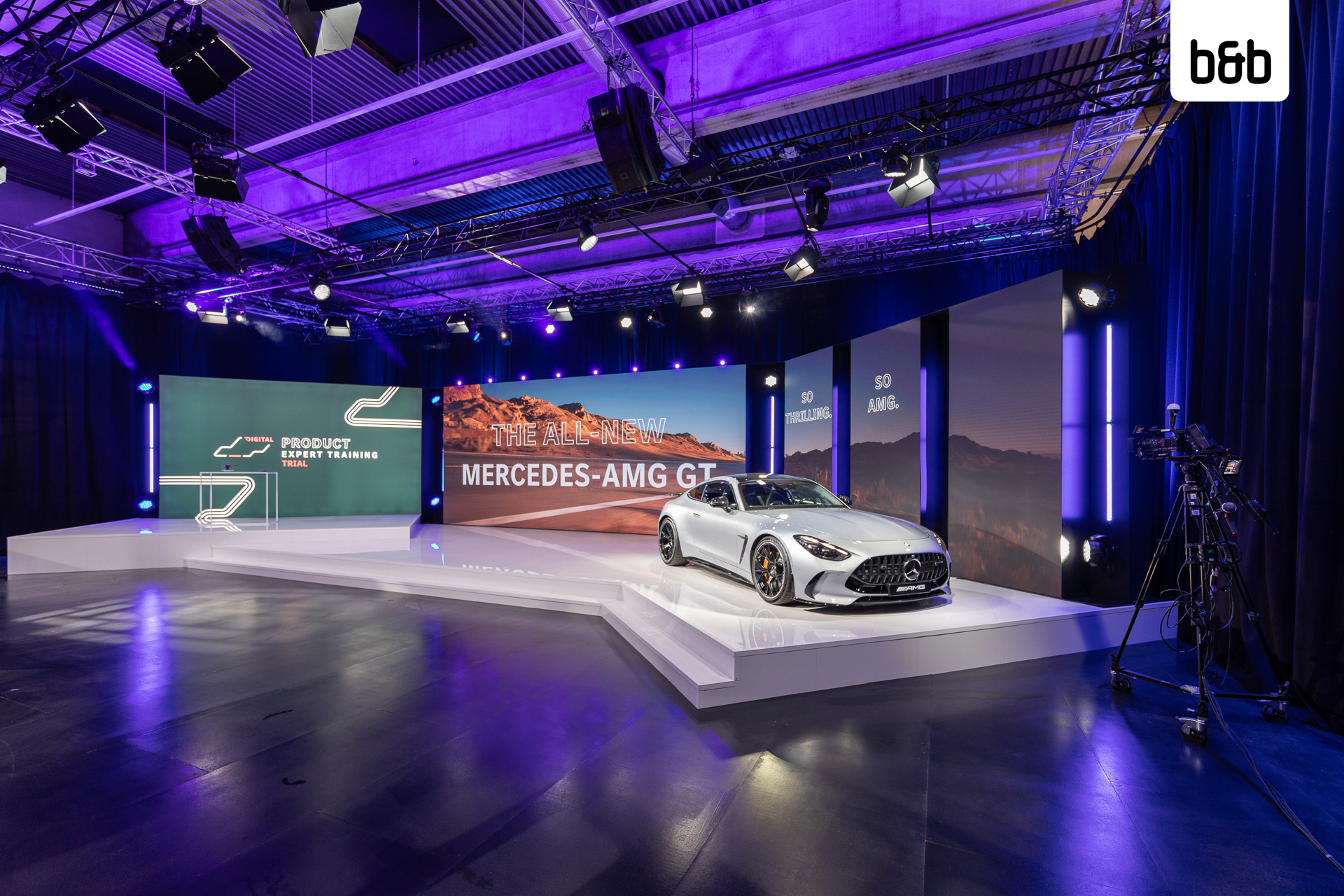 Bereits zum zweiten Mal fand das AMG DIGITAL PRODUCT EXPERT TRAINING im GATE22 statt. Bei der internationalen Trainingsveranstaltung für AMG Sales Experts stand in diesem Jahr der Mercedes-AMG GT 63 4MATIC+ im Rampenlicht. Als eingespieltes Team setzten wir, gemeinsam mit der Eventagentur zet:project GmbH, die außergewöhnlichen Highlights des Fahrzeugs gekonnt in Szene. Unser multifunktionales Hybrid-Studio mit der 90m2 großen Bühne bot dafür die ideale Kulisse.